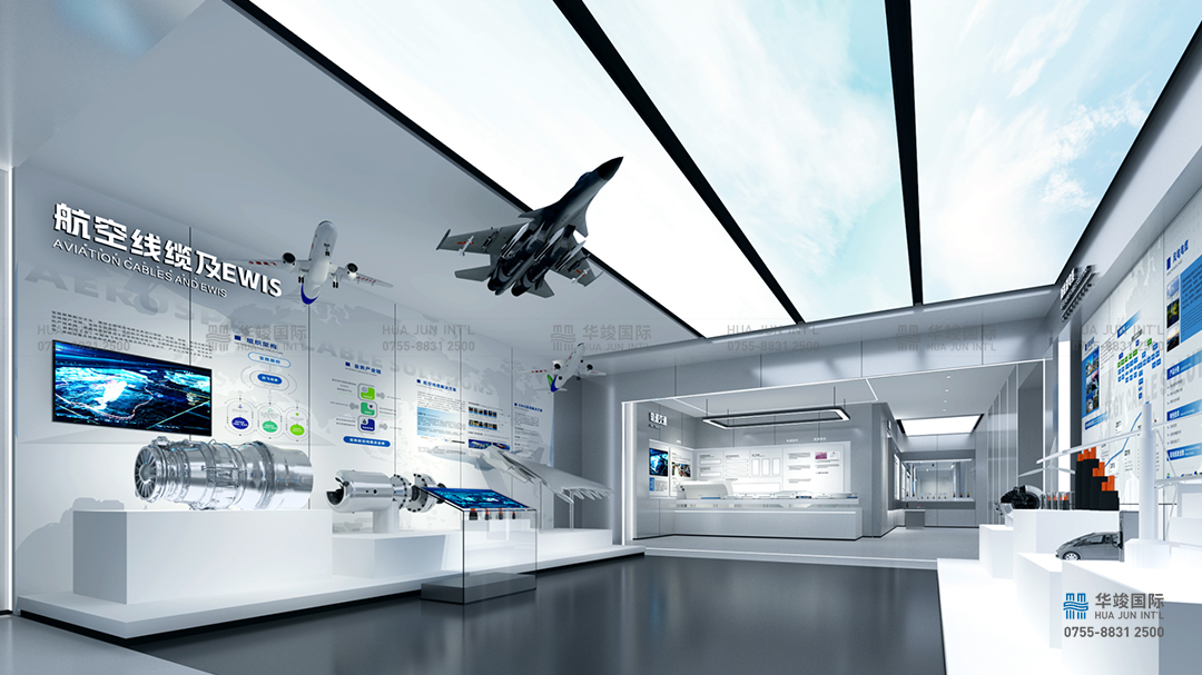 工業(yè)領(lǐng)域:軍工電纜,智能裝備電纜,工業(yè)機(jī)器人用移動軟電纜。“線纜應(yīng)用”智能交互技術(shù),在飛機(jī)模型場景中,呈現(xiàn)飛機(jī)切面結(jié)構(gòu)的線纜分布圖,結(jié)合互動屏幕,多角度演繹飛機(jī)線纜線束、總線線纜的實際應(yīng)用。