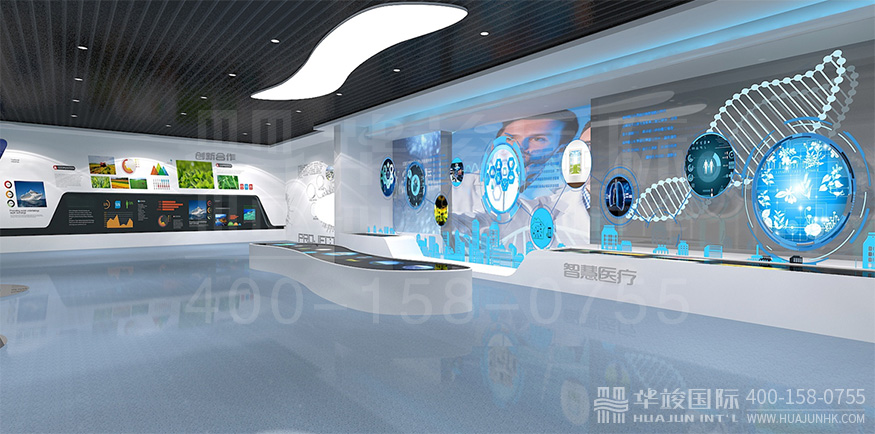 康美醫(yī)藥企業(yè)智慧展廳項(xiàng)目由華竣國際執(zhí)行整體設(shè)計(jì)施工,華竣國際擁有頂級展館設(shè)計(jì)團(tuán)隊(duì)和國際化的創(chuàng)新設(shè)計(jì)理念,融合互聯(lián)網(wǎng)+思維,順應(yīng)科技化趨勢,打造全新智慧多媒體展廳。
