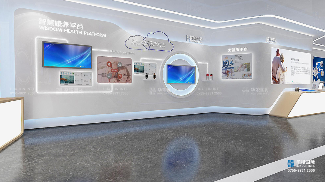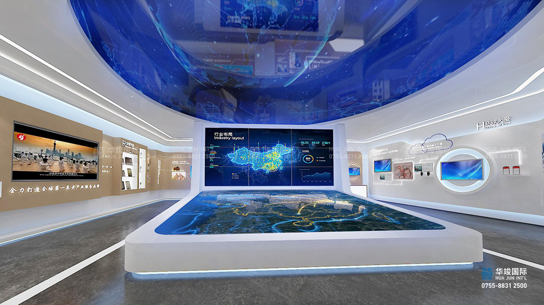 展廳通過精美的圖文,結(jié)合高清LED屏幕播放品牌宣傳片,并運用互動拼接屏呈現(xiàn)企業(yè)發(fā)展歷程,讓參觀者能清晰直觀了解企業(yè)每個節(jié)點的重要事件,展現(xiàn)了企業(yè)雄厚的實力。在行業(yè)布局戰(zhàn)略規(guī)劃展示區(qū)域,整體空間由上至下大氣磅礴,數(shù)字互動沙盤結(jié)合LED屏幕,氣勢恢宏,突顯了企業(yè)緊跟一帶一路國家戰(zhàn)略,打造國內(nèi)第一知名養(yǎng)老品牌,推動中國老年事業(yè)的發(fā)展,成為中國養(yǎng)老服務(wù)業(yè)產(chǎn)業(yè)發(fā)展領(lǐng)頭羊,行業(yè)先鋒的勢頭。