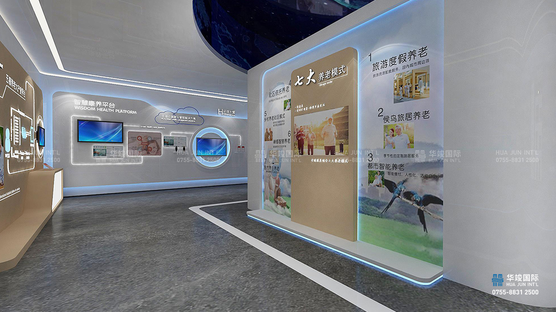 中匯愛五福養(yǎng)老服務(wù)體驗展廳設(shè)計項目由華竣數(shù)創(chuàng)執(zhí)行整體設(shè)計施工,以場景體驗和多媒體互動體驗,讓觀眾在互動體驗中親身感受。